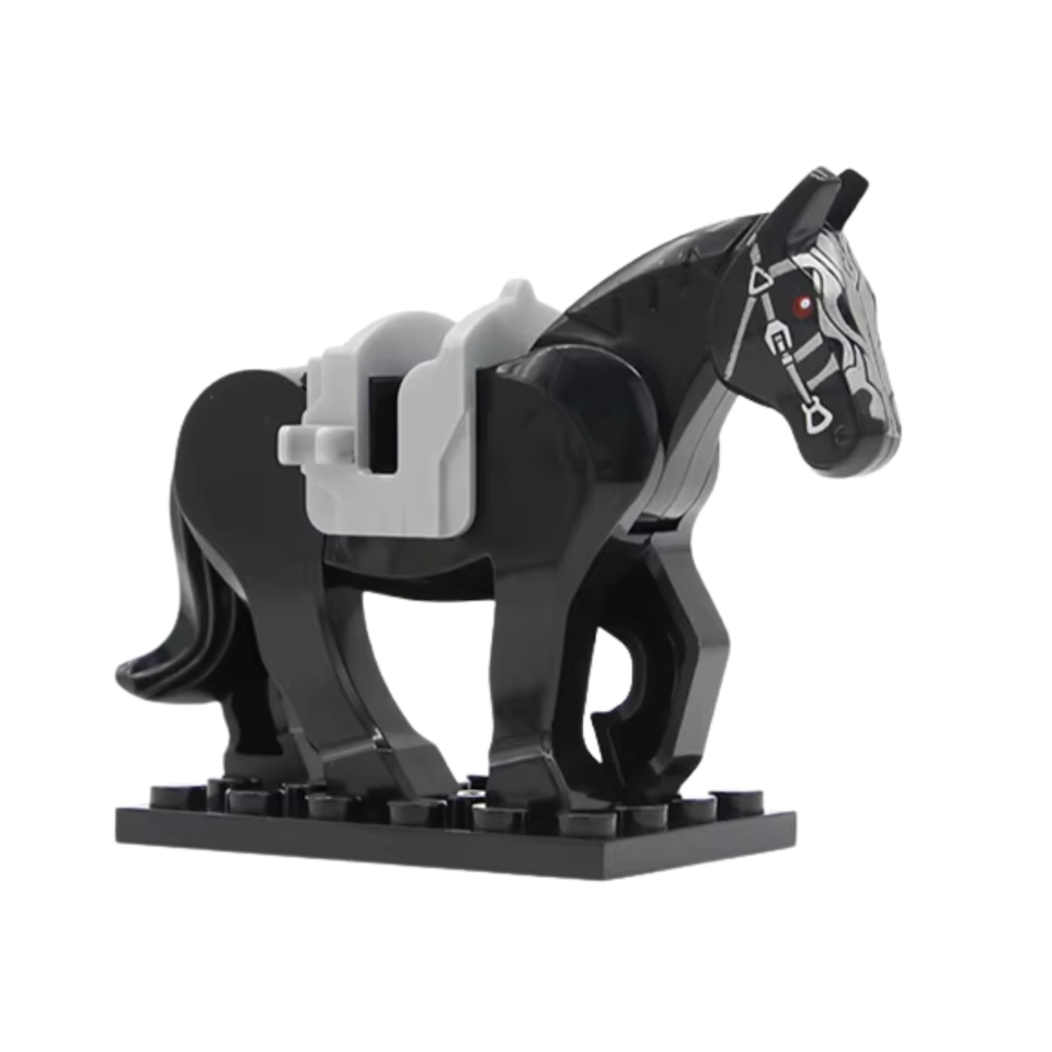 Add drama and edge to your scenes with this sleek black horse mount. Perfect for dark knights, forest rangers, or mysterious travelers, it’s a striking figure to pair with your minifigures. The saddle makes it ideal for action-packed builds or medieval displays.
