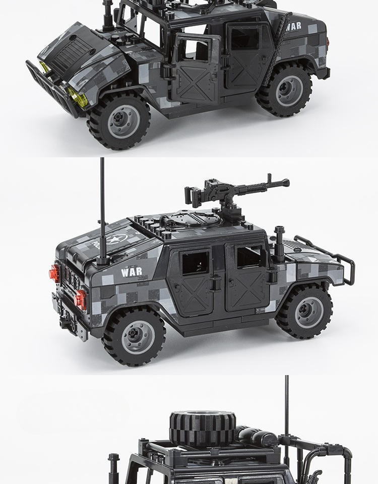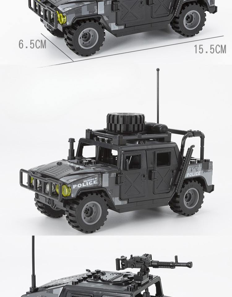 Black Police Hummer with Machine Gun & Digital Camo Building Blocks Set