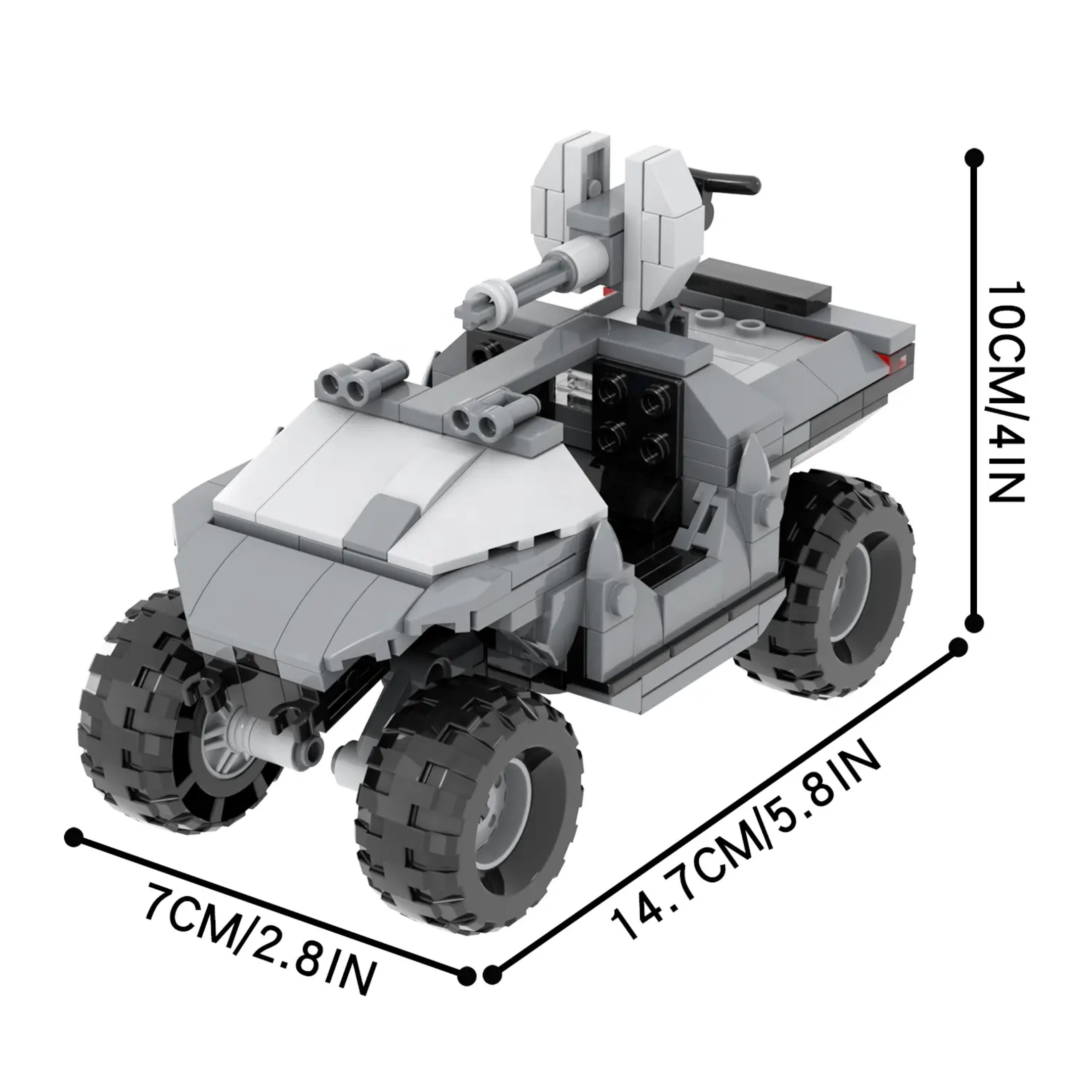 The Combat Warthog Recon Vehicle is a heavily armed all-terrain vehicle designed for rapid deployment in hostile environments. Used for reconnaissance and frontline support, this tactical vehicle is equipped with a mounted turret for superior firepower, making it an essential asset in military operations. This building blocks set is perfect for sci-fi fans, collectors, and enthusiasts looking to create epic futuristic battle dioramas.