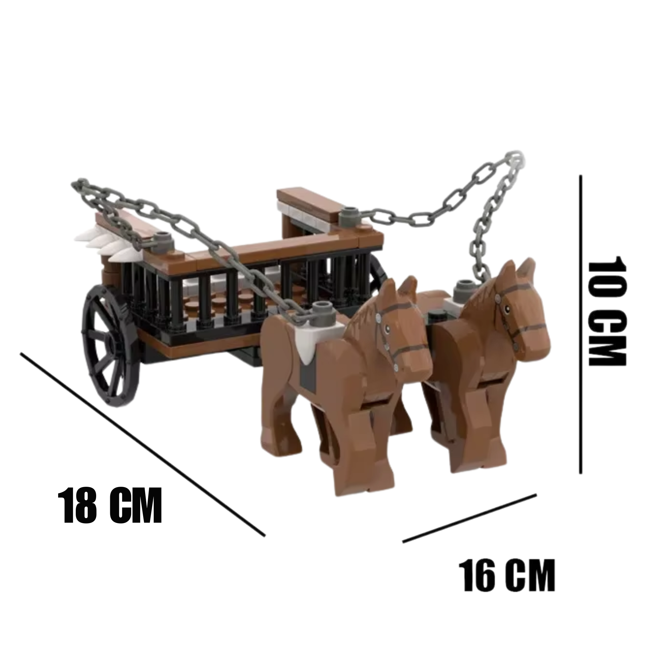 Recreate medieval justice and warfare with the Prisoner Transport Cart, a detailed model of the iron-barred wagon used by knights, soldiers, and jailers to transport captives. This set is perfect for collectors, history enthusiasts, and medieval diorama builders, capturing the reinforced cage, spiked roof, and sturdy chains that secured prisoners during their journey.