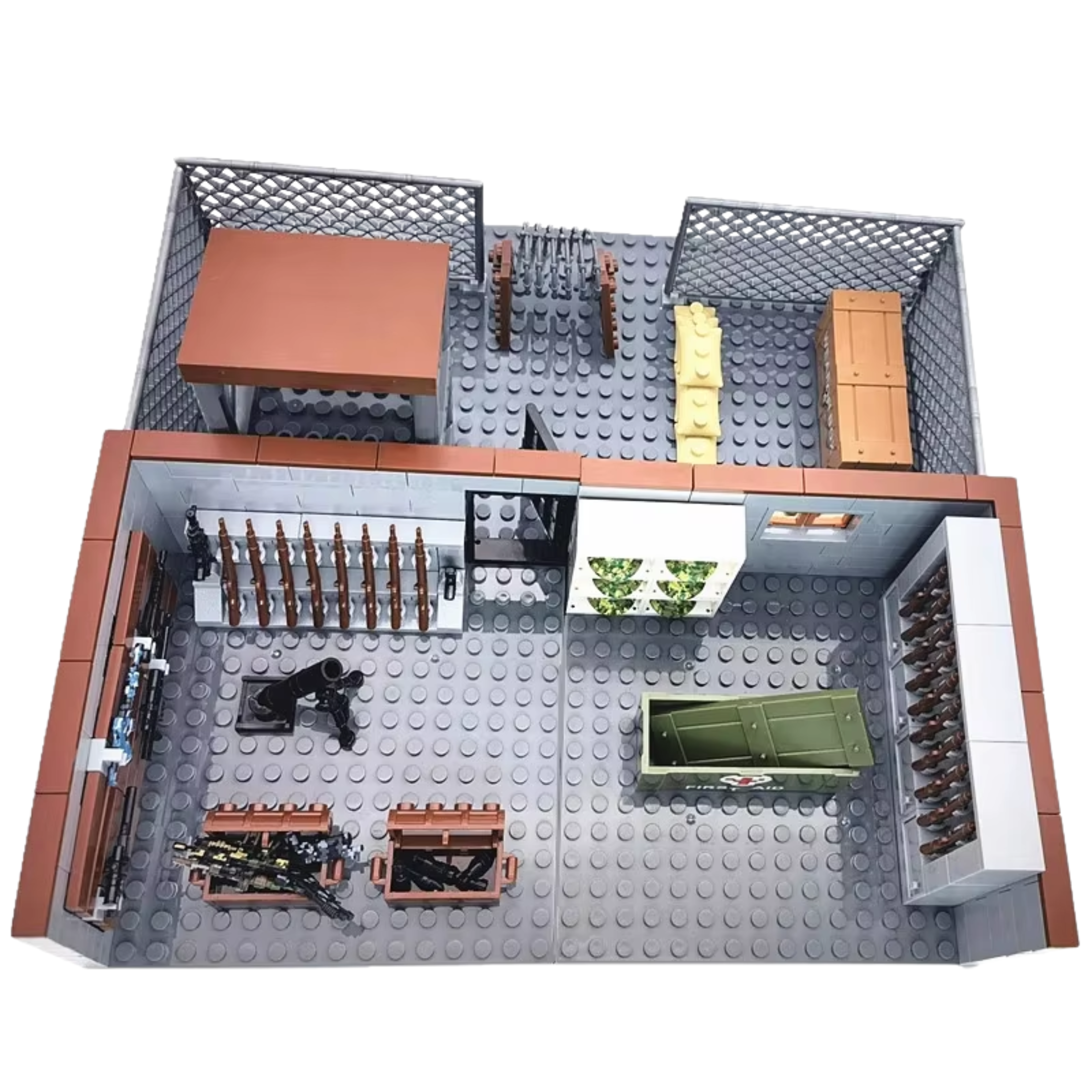 Step into the world of military logistics and combat readiness with this Military Barracks & Armory building block set. Designed as a weapons storage facility and soldier training compound, this set includes rifle racks, ammunition crates, a first-aid station, a surveillance tower, and a secured perimeter. Used in military bases and combat zones, barracks and armories serve as hubs for training, weapon maintenance, and tactical planning. Perfect for dioramas, military enthusiasts, and collectors, this set enhances any battlefield display with its realistic defense infrastructure.