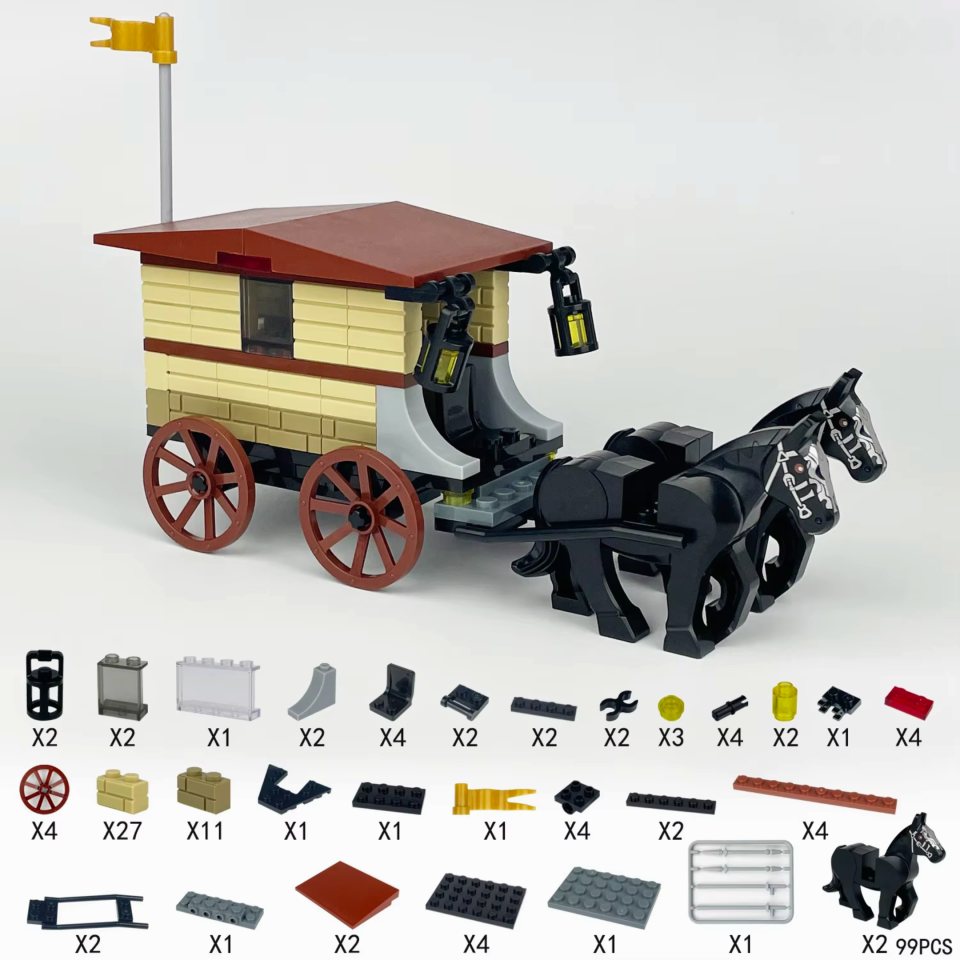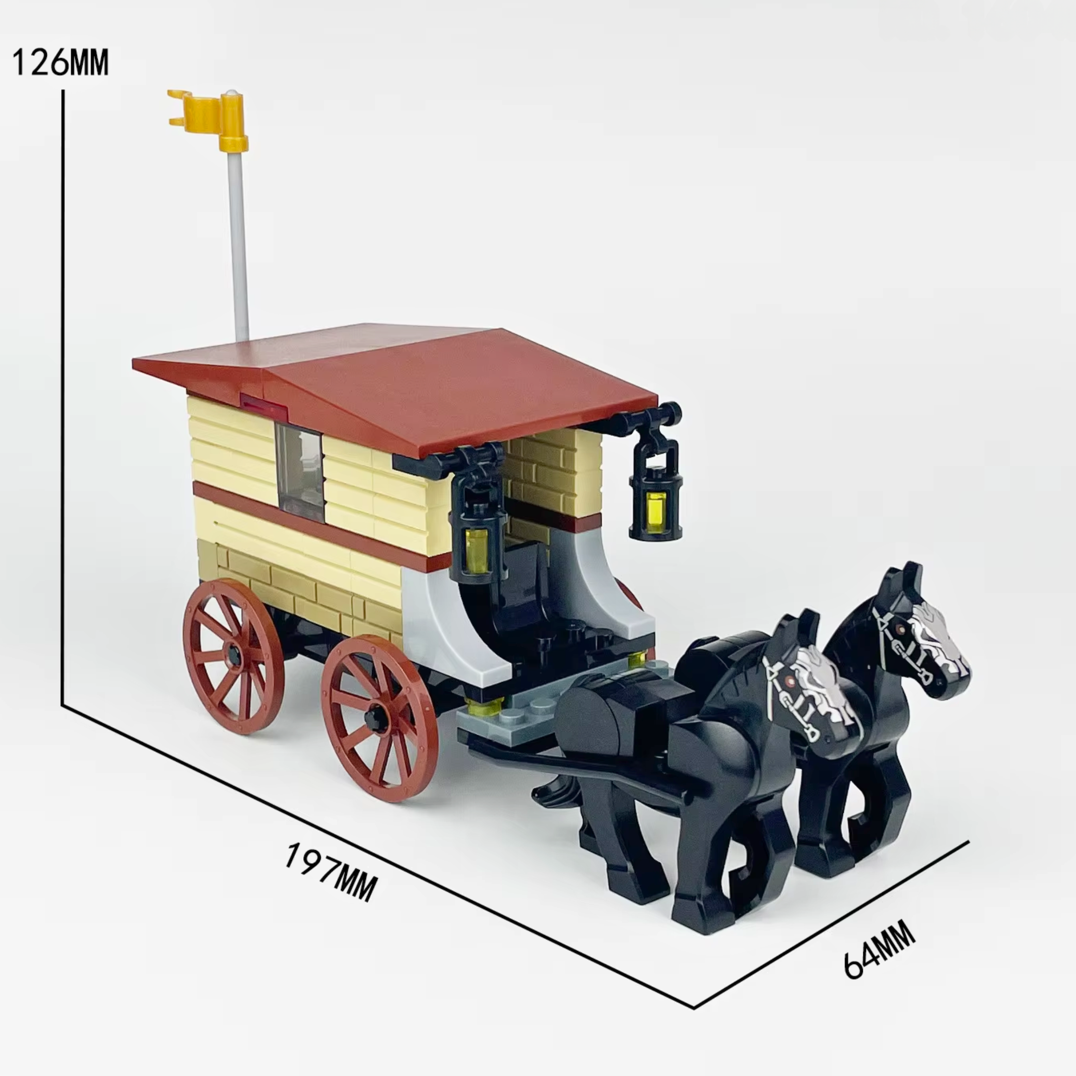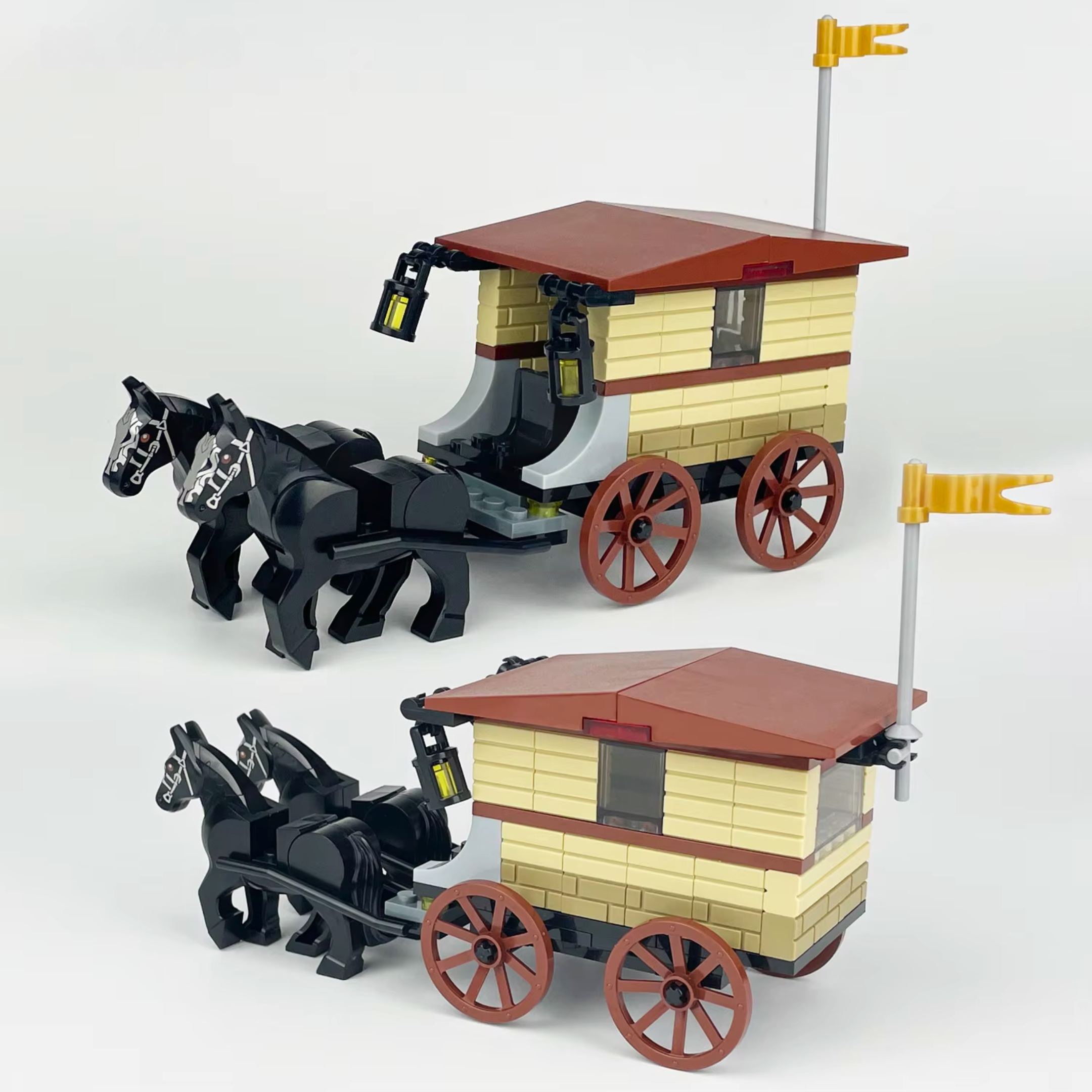 Medieval Horse-Drawn Covered Wagon Building Blocks Set