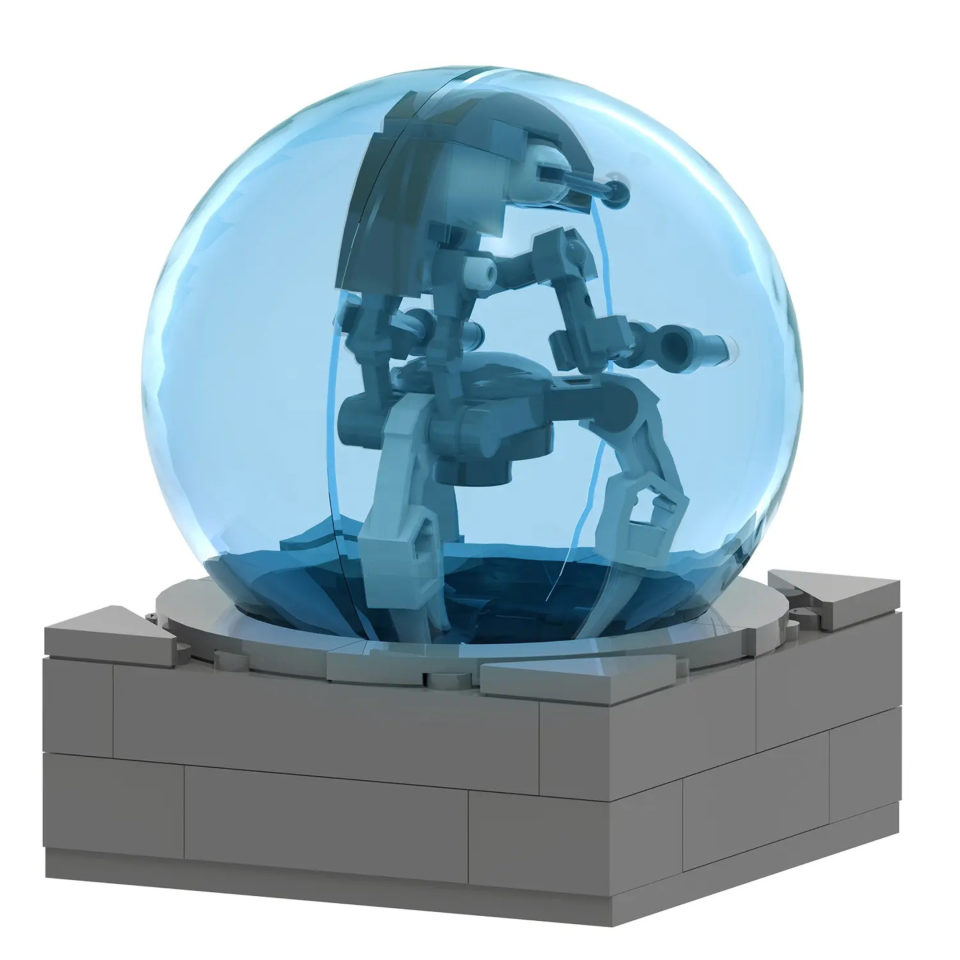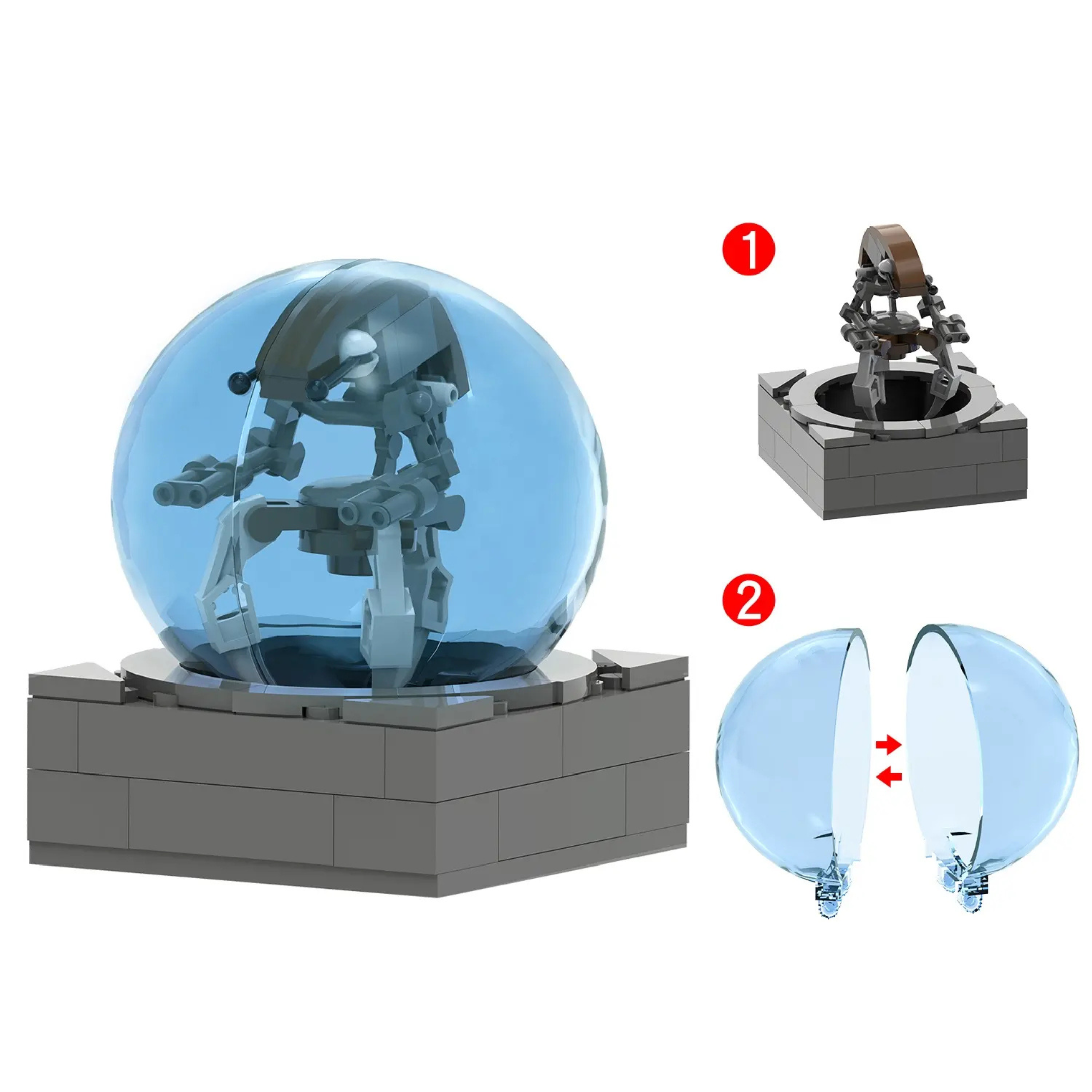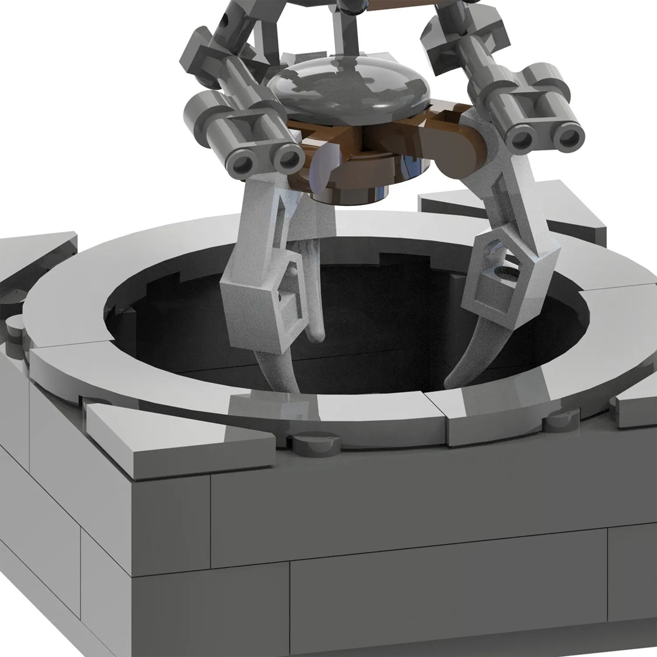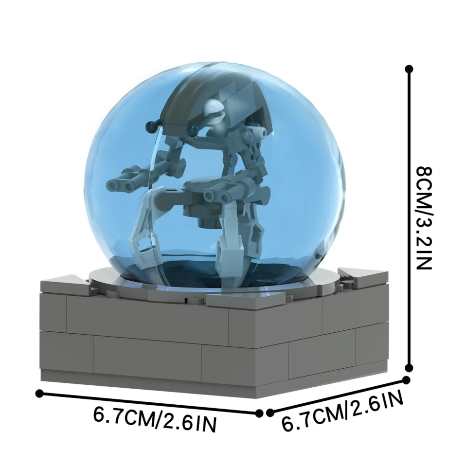 Unleash the power of the Droideka Destroyer Droid, an advanced battle droid used by the Trade Federation and Separatists during the Clone Wars. Equipped with twin blasters and an energy shield, these rolling droids were feared for their agility and firepower on the battlefield. Perfect for recreating Star Wars battles, this minifig-scale model includes a shield display, making it an excellent addition to any Clone Wars or Galactic Republic vs. Separatists diorama.