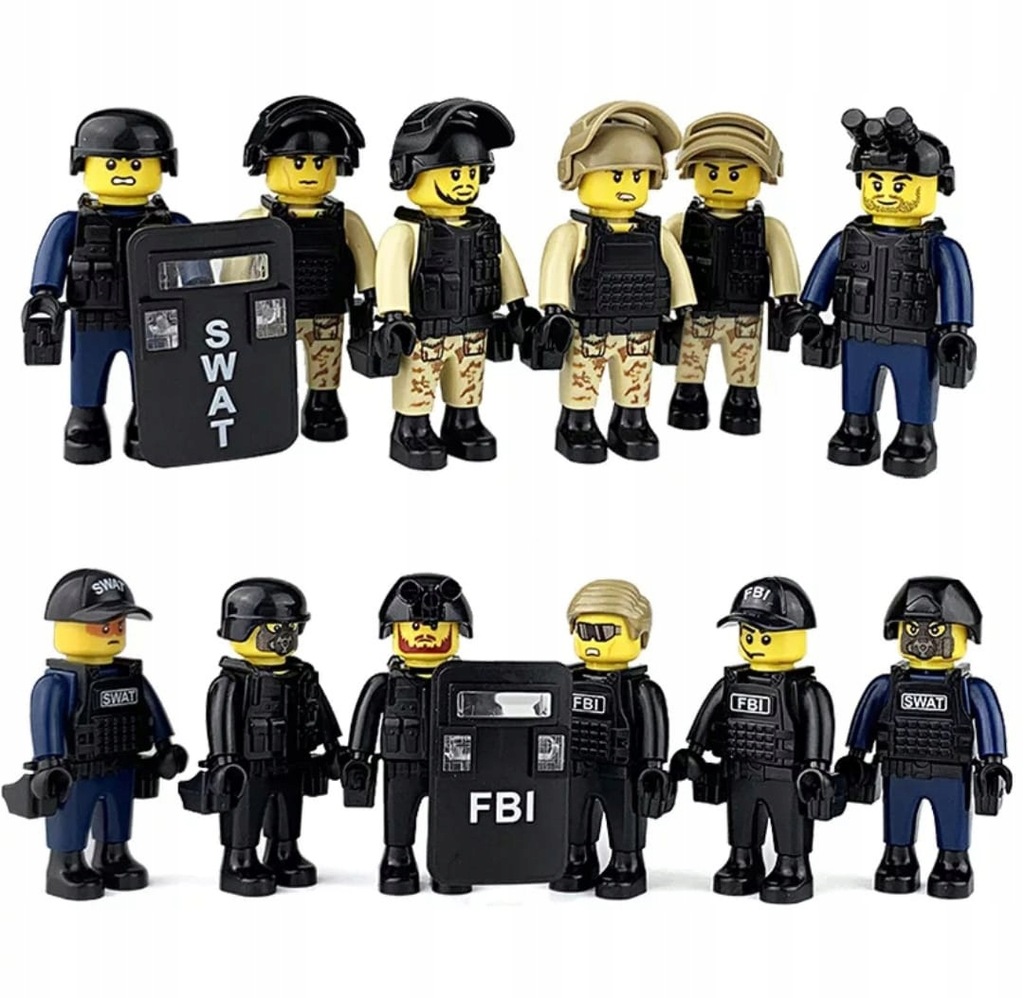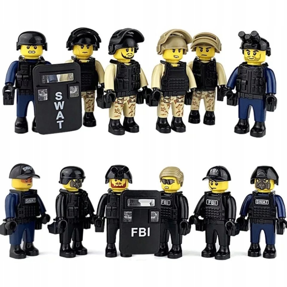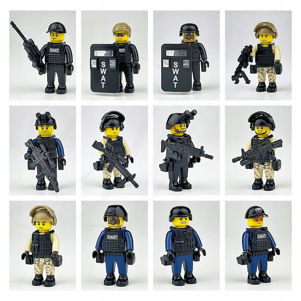 Special Forces and SWAT Minifigure Set – 12 Soldiers with Weapons and Riot Shields