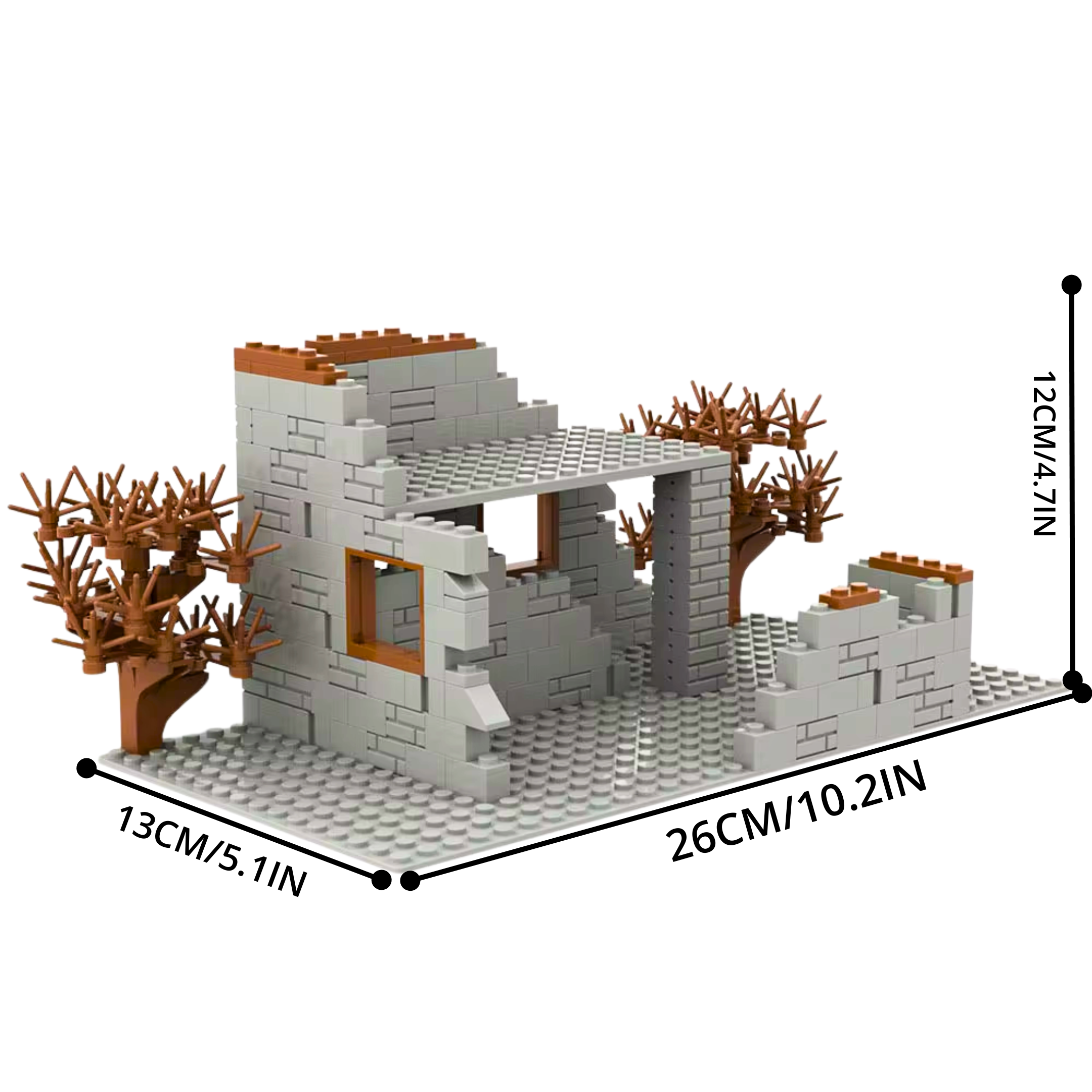 Recreate the devastation of war with this War-Torn Ruined Building model, designed to depict the aftermath of urban combat. These types of structures were commonly seen in World War I, World War II, and modern warfare battle zones, making it an essential piece for historical dioramas, battle recreations, and military displays. This set is ideal for setting up sniper nests, urban warfare scenes, and strategic battle positions, adding realism to any military-themed collection.
