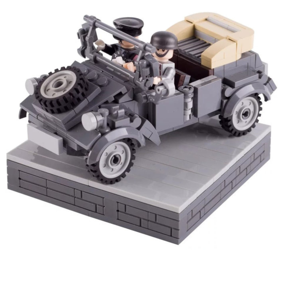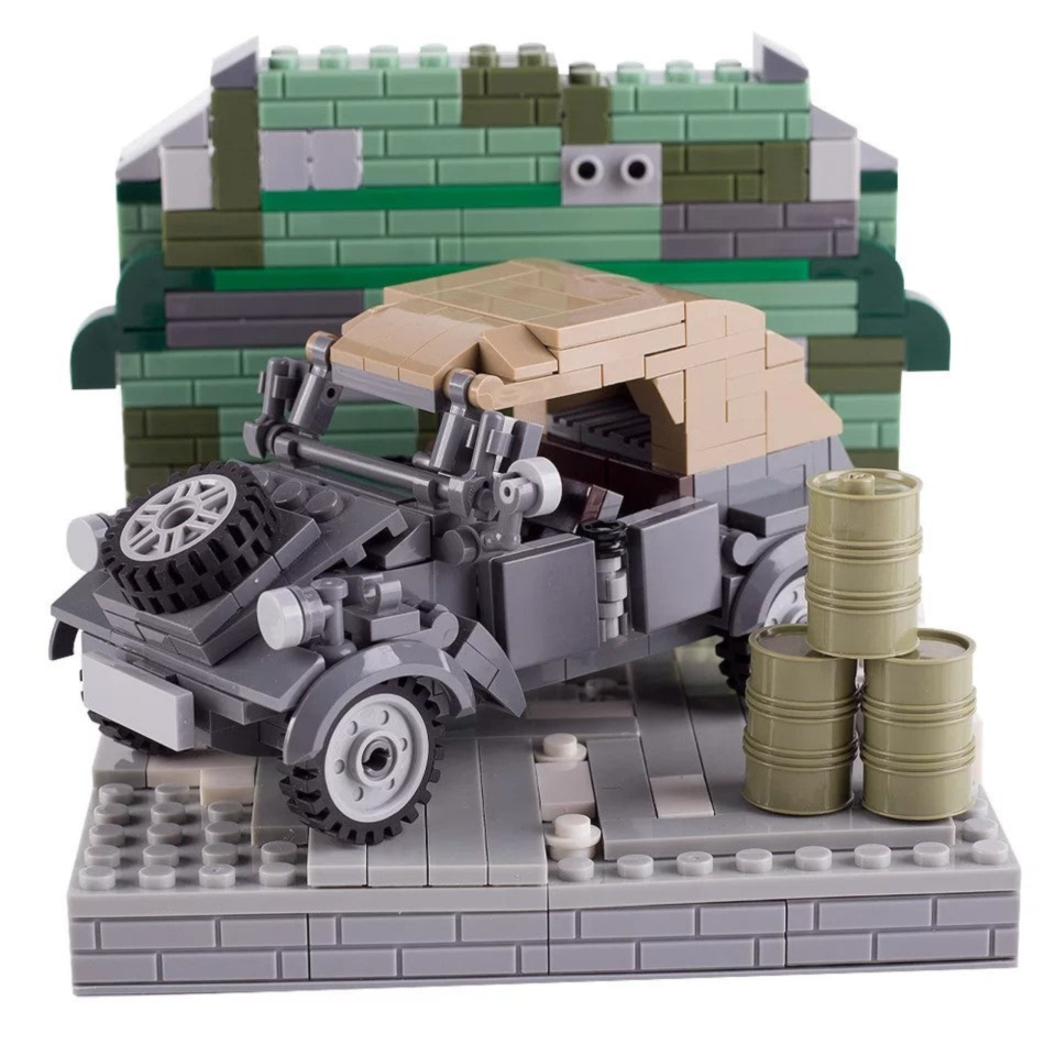 The Kübelwagen was a light military utility vehicle used by the German Wehrmacht during World War II for transport, reconnaissance, and command purposes. Introduced in the late 1930s, it was designed for rugged terrain and battlefield mobility, making it a crucial asset in various military campaigns. This building block set allows enthusiasts to recreate this historical vehicle, making it a perfect addition for collectors, military history fans, and diorama builders.